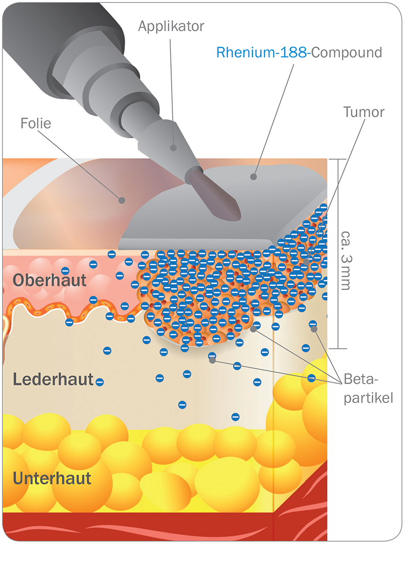 Die Rhenium-SCT® ist eine personalisierte Therapie. Das verwendete Rhenium-188-Compound wird dabei zielgenau über dem zu behandelnden Tumor auf eine zuvor aufgeklebte Folie aufgetragen. Dadurch wird außer dem Tumor kein gesundes Gewebe geschädigt.