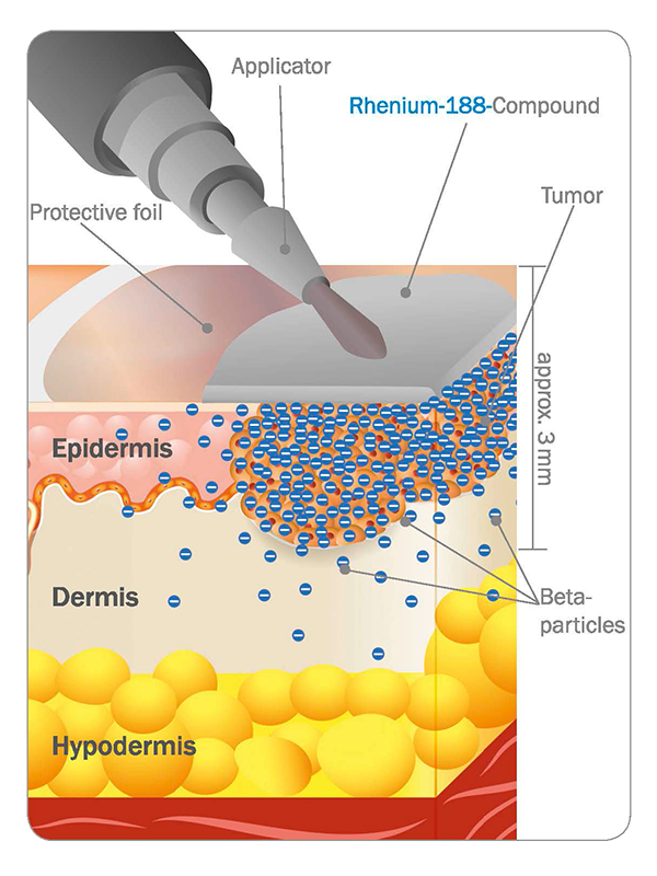 This epidermal radioisotope therapy is based on the local direct cell-killing effect of the beta-radiation, which triggers both the local death of cells and local reactions of the immune system of the body to repair itself.
